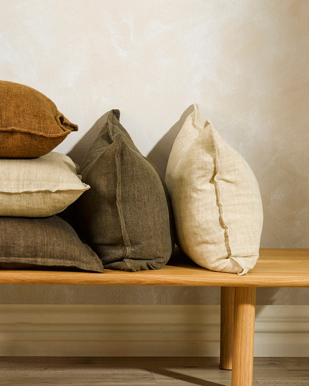 Raw texture is celebrated in stunning natural tones. Handwoven in 100% linen, the Arcadia features a 1cm flange edge, enhancing strength and durability while creating an easy and contemporary aesthetic. The putty tone and lumbar shape makes this the perfect finishing piece for a pared-back, thoughtfully crafted interior.