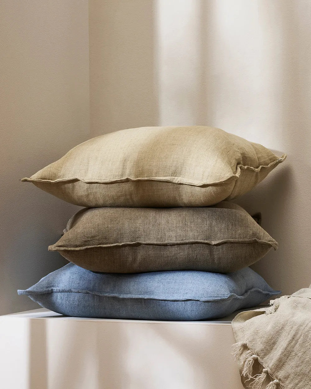Handwoven from medium-weight linen fibres, the Cassia collection exemplifies timeless, contemporary style. Featuring a 1cm flange edge, this uplifting chambray blue tone is perfect for styling fresh, pared-back spaces. Pair with the Arcadia range to add interest with size and shape.