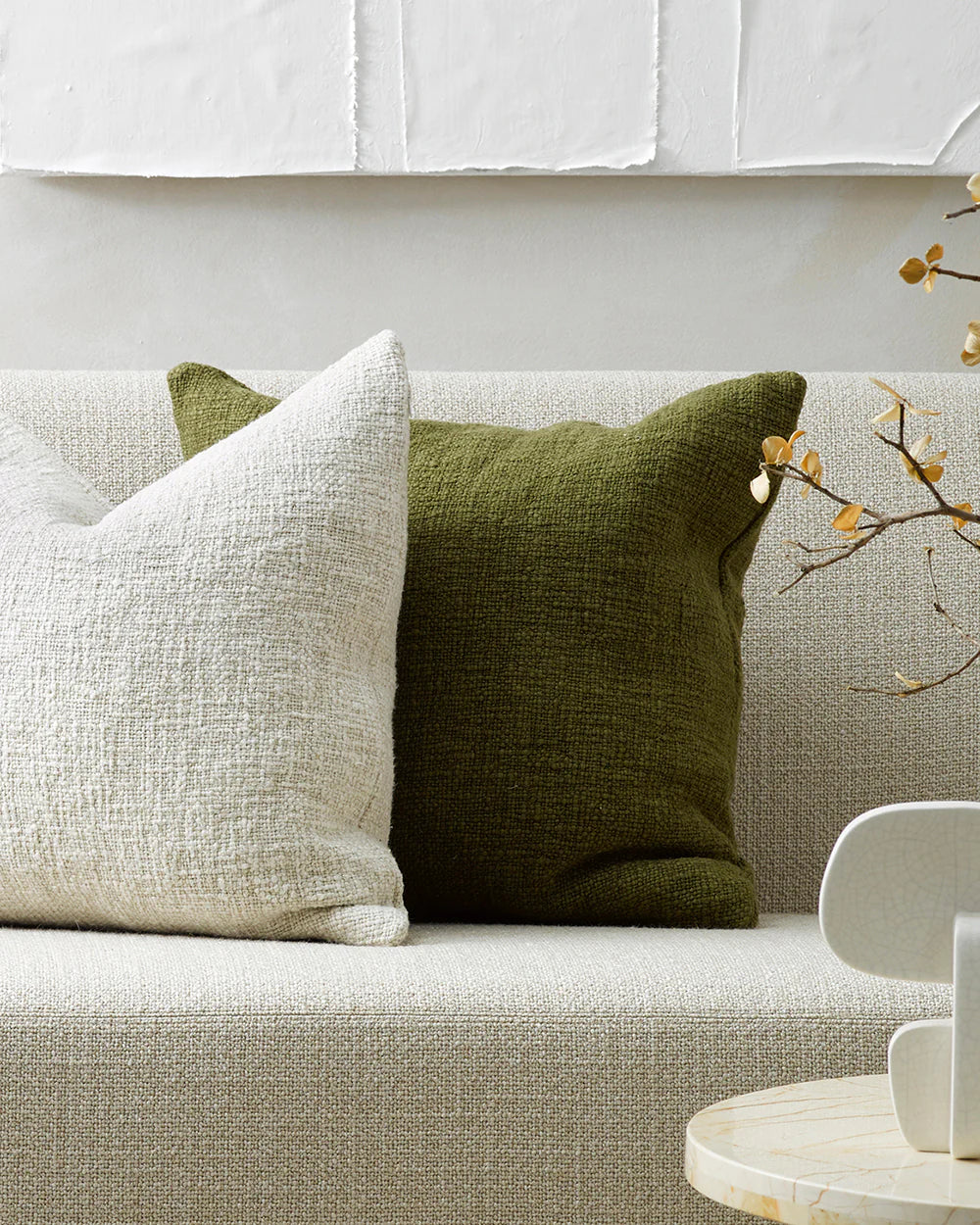 Bring harmony to interiors with exceptional texture and fresh, uplifting white tones. Handwoven from thick slub yarns, the Cyprian’s softness, artisan aesthetic and rustic texture makes it perfect for creating inviting and contemporary spaces. The minimal design makes Cyprian a versatile pairing cushion, or a beautiful feature when used on its own.