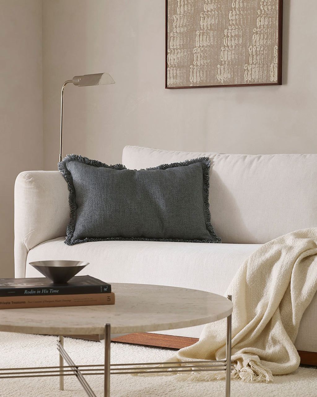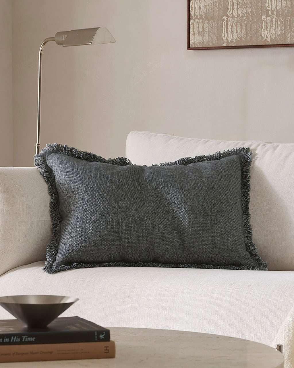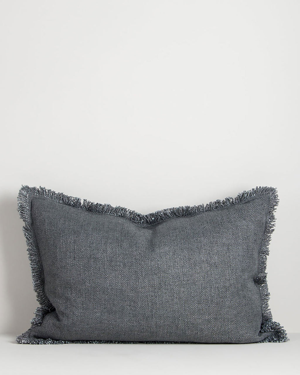 Invite slate-blue tones into your interior with the understated design of our Dover lumbar cushion. Crafted from thick strands of yarn, the simple weave and soft, fringed edging adds an inviting touch of texture and colour to your space.