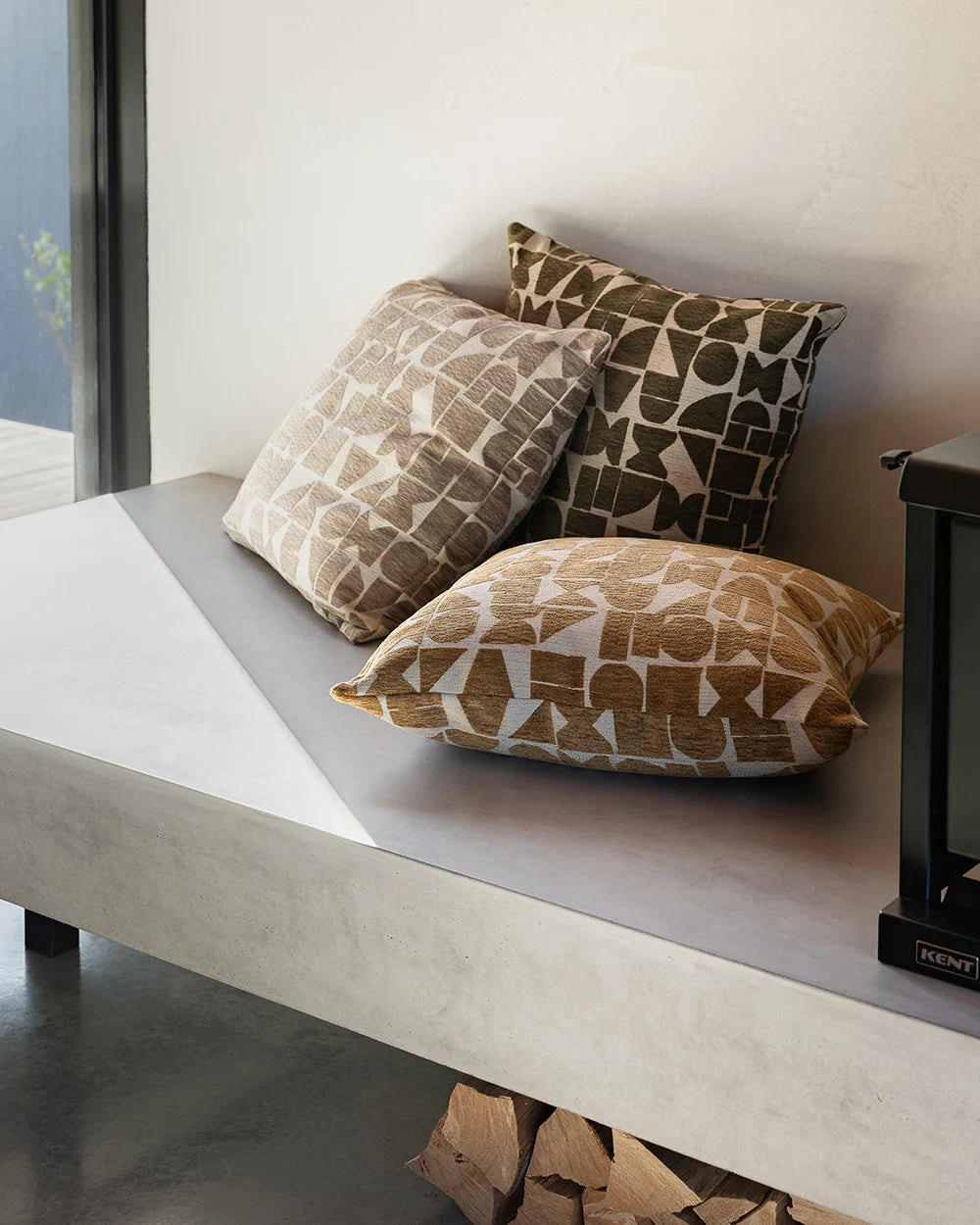 Invite bold geometric design into spaces with the contemporary aesthetic of the Miller cushion. Featuring rich ochre shapes arranged on a natural-toned base, raised sections of velvet give this piece a soft, tactile finish. The earthy palette and playful nature of the Miller create a vibrant interior ambience.