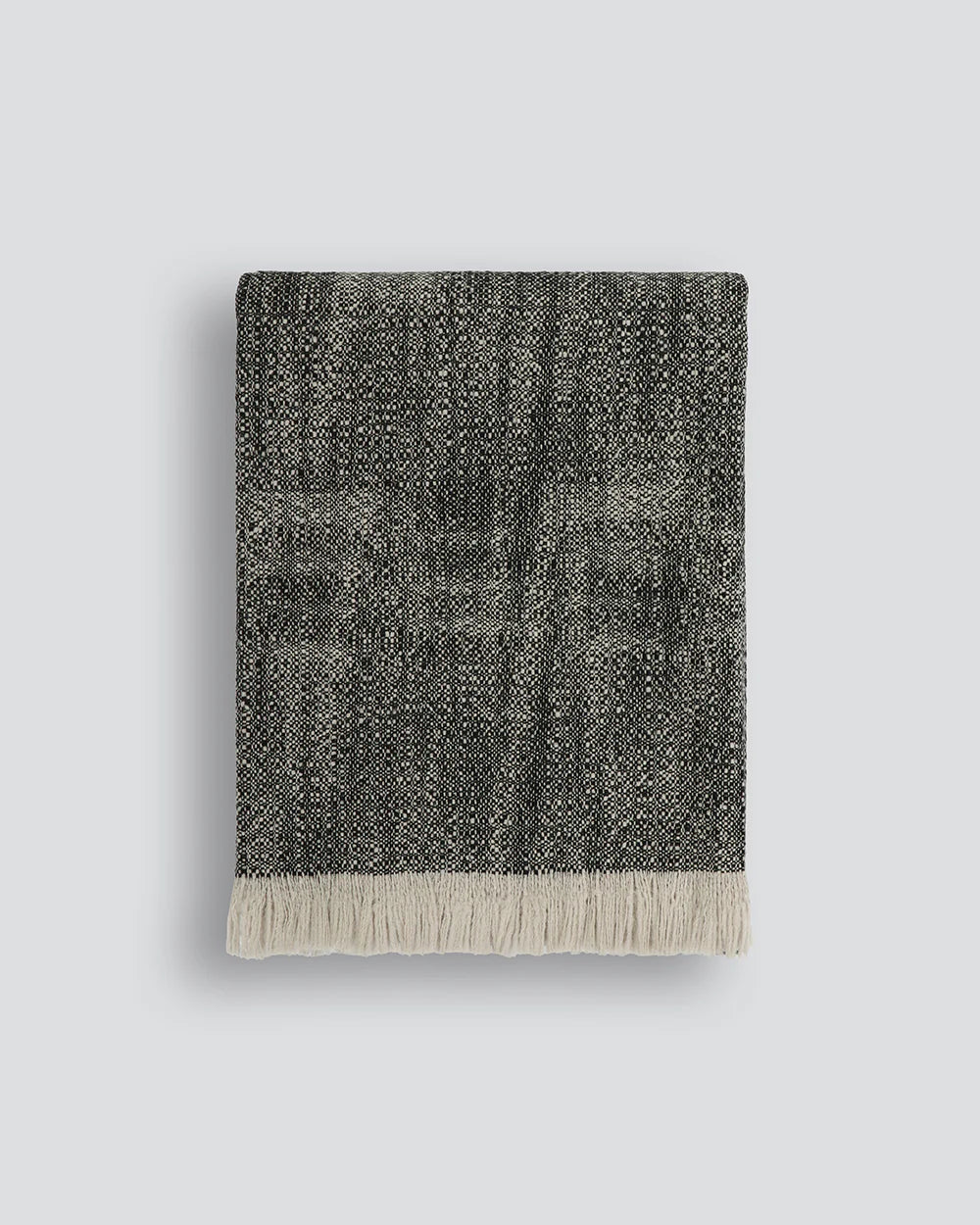 Combining natural tones of ivory and charcoal, the dual-tone fibres of the Perendale creates an inviting, textural aesthetic. Handwoven from slubby strands of wool, the soft tones and medium-weight weave adds a sense of natural simplicity to a space. Style with simple, finely woven cushions to emphasise the textural elements of this piece.