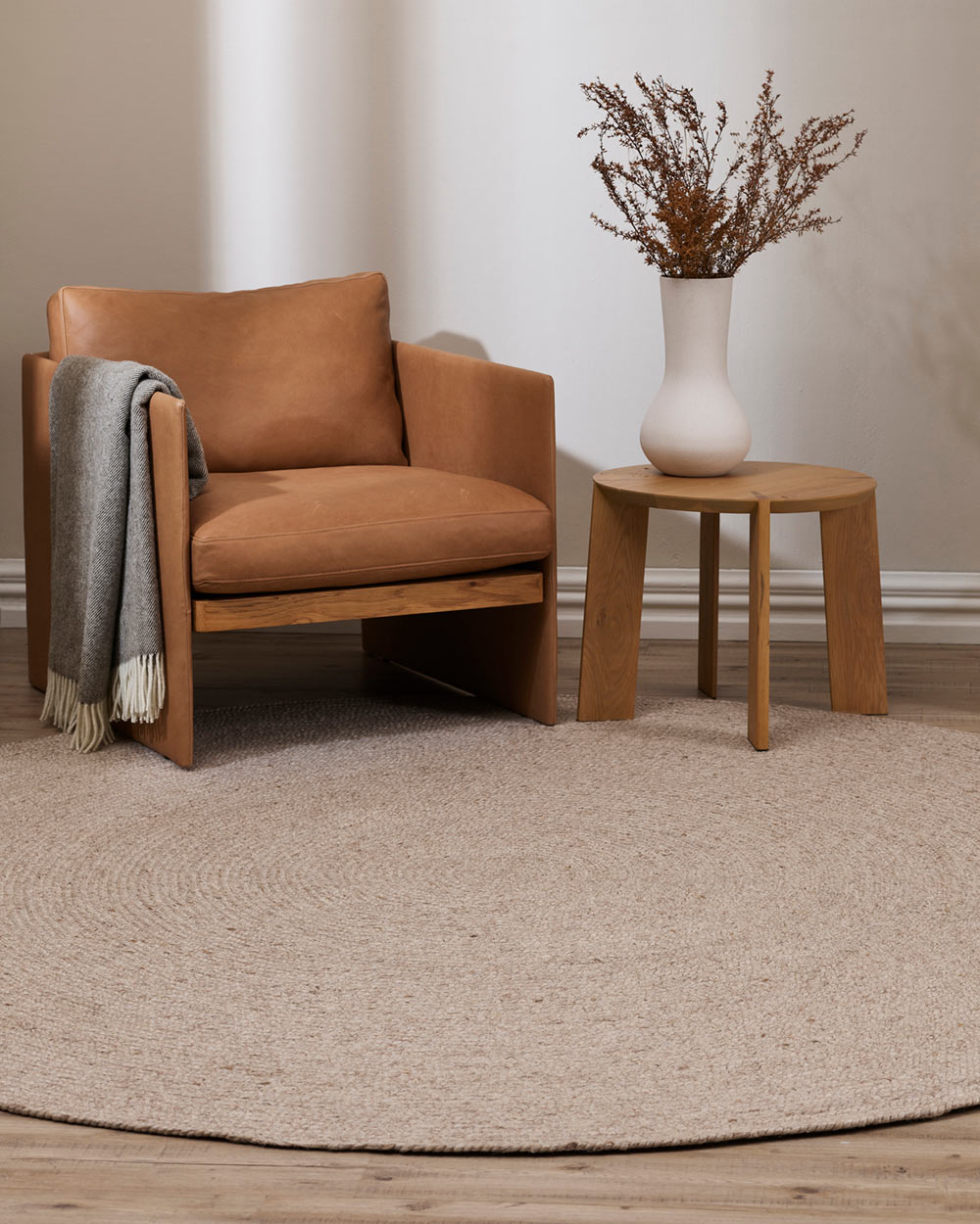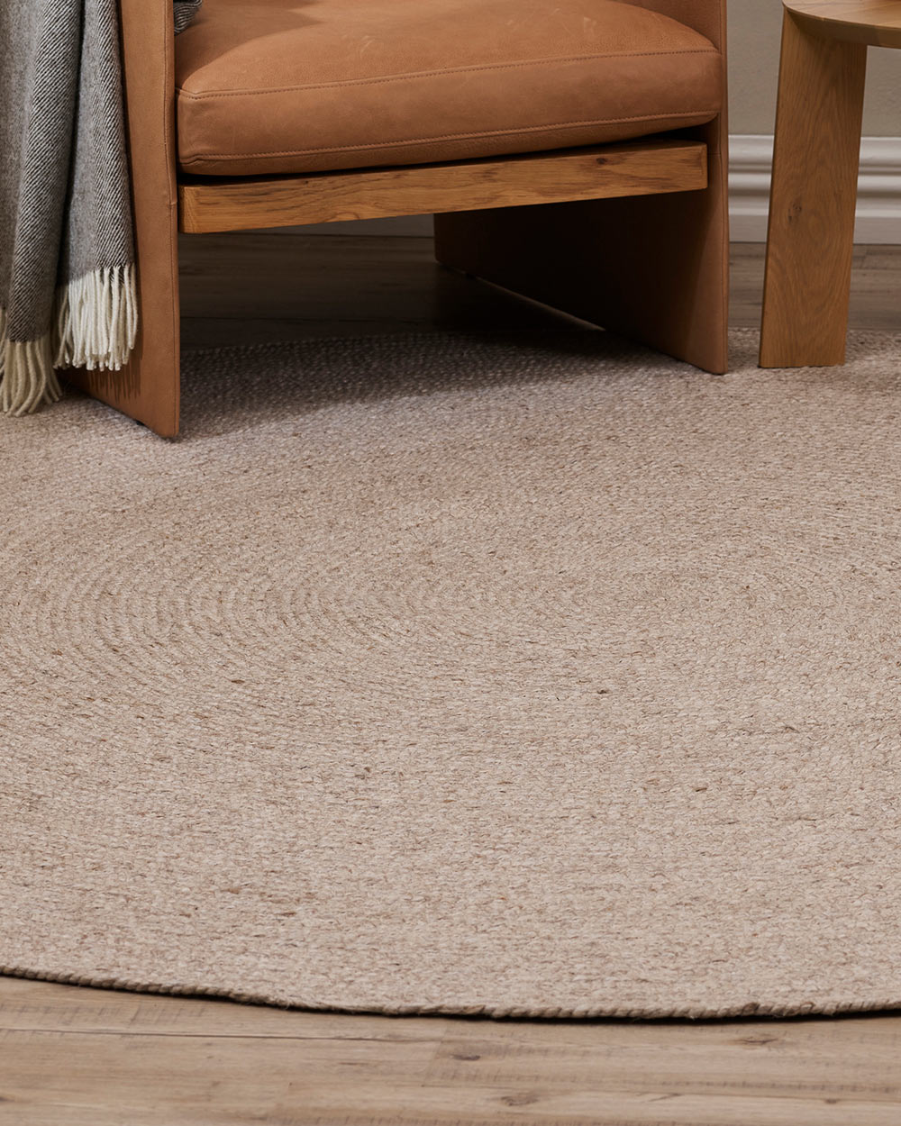 Handbraided from a wool and viscose blend, the Tairua is perfect for defining an area or anchoring key furniture pieces. Understated and inviting, the subtly mottled yarn provides a neutral base for laid-back spaces. Pair with handmade objects and textiles for a refined yet rustic interior look.
