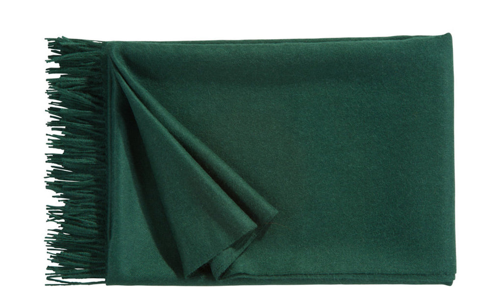An exquisite throw, by Fischbacher 1819, in luxurious alpaca yarn. Alpaca fibre has an advantage over wool because of the extra hollow space in the fibre. This additional space creates a greater thermal capacity and allows for more warm air to fill the textile and provide extra warmth. This throw is incredibly soft and beautiful to touch, and easy to match in this rich forest green. When something extra-special is called for, this throw is the perfect choice.