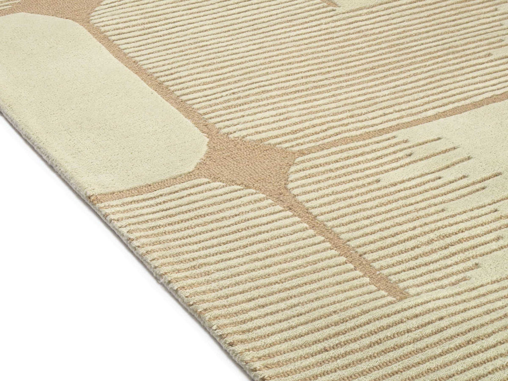 This refined hand-tufted rug interprets the Marcel design in a softer, more understated palette. An oatmeal-toned ivory wool ground is intersected with a light taupe loop detailing, creating a calm graphic pattern that feels both contemporary and timeless.