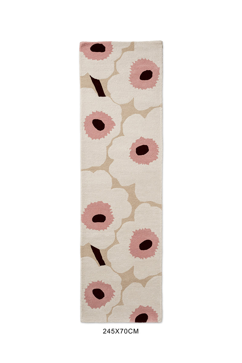 Soft sophistication and timeless femininity converge in the Marimekko Unikko Beige Pink rug, a beautifully hand-tufted masterpiece crafted in India from 100% high-quality New Zealand wool.