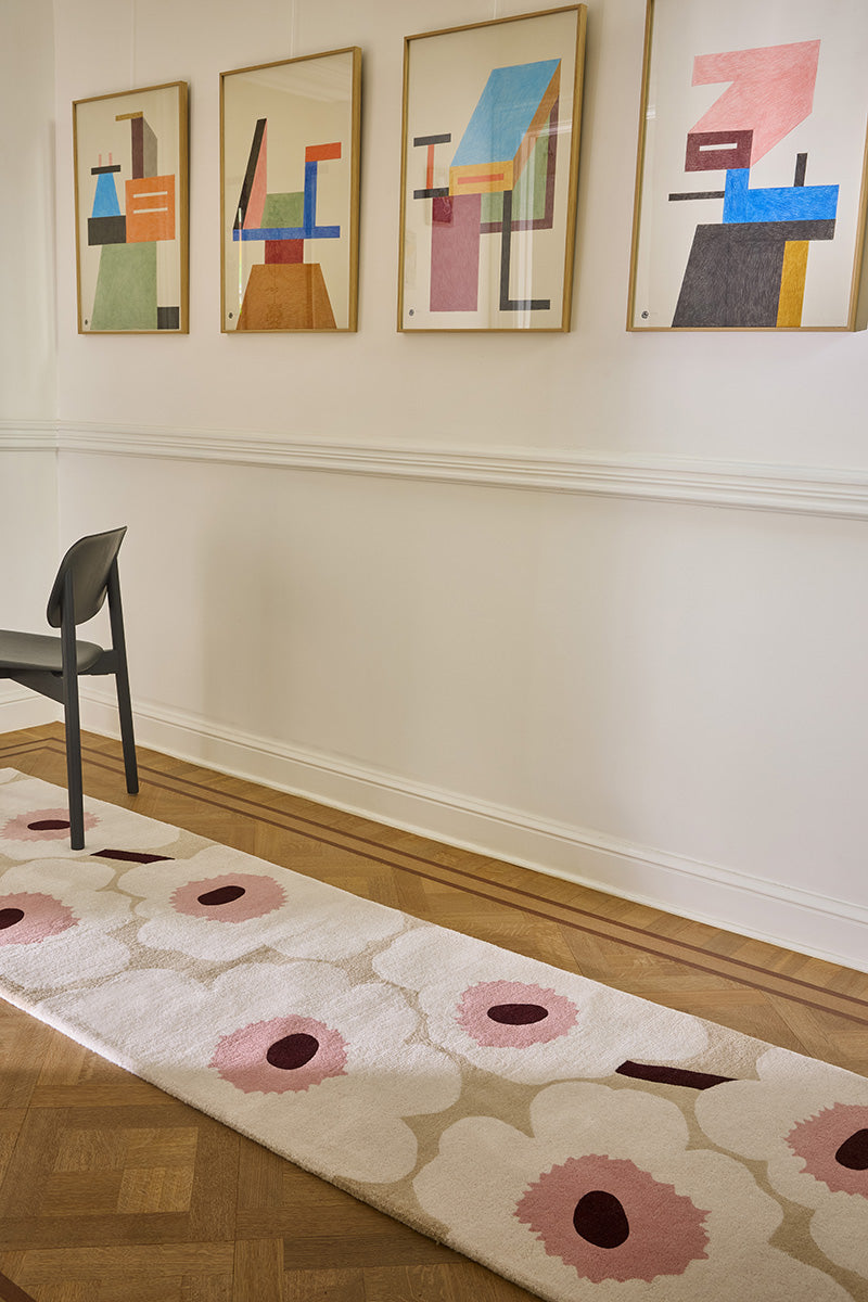 Backed for stability and suited to underfloor heating, this refined yet quietly romantic piece infuses bedrooms, living rooms, dressing areas, or any space craving understated luxury, gentle colour harmony, and an enduring touch of Finnish design heritage with effortless grace and indulgent comfort.
