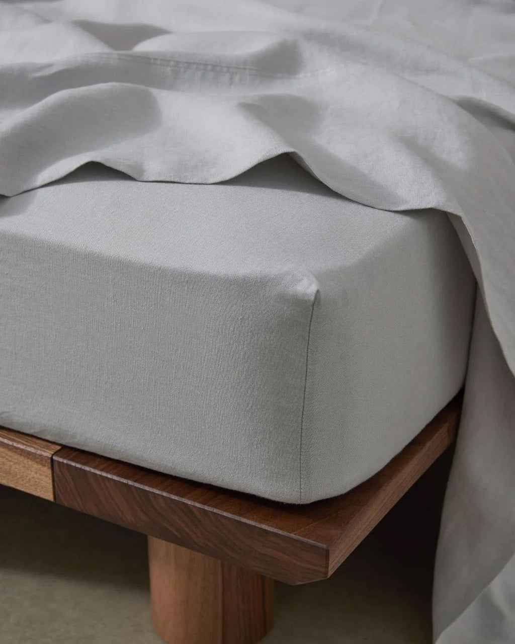 Ravello Linen Fitted Sheet - Silver | Weave Home Bed Linen