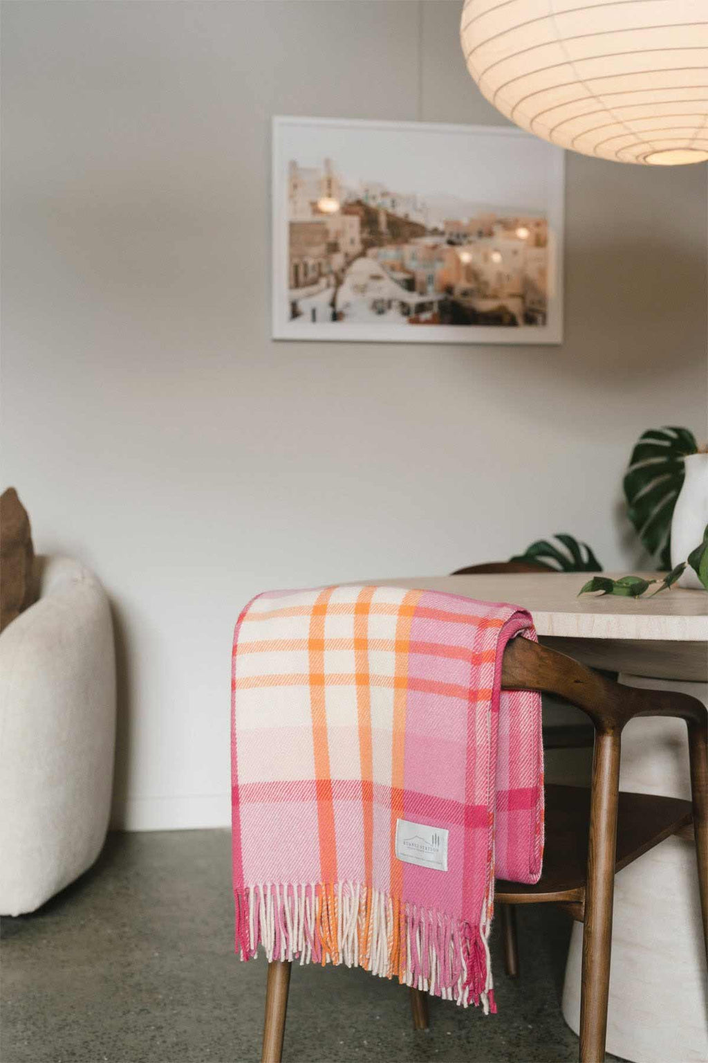 Ruanui Station Lambswool Throw - Okahu Orange Check