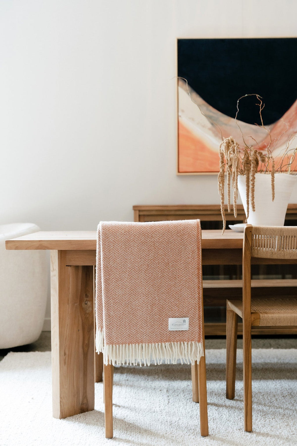 This throw is made from incredibly fine, luxuriously soft lambswool that is grown exclusively at Ruanui Station in the Central North Island of New Zealand. The colour takes its name directly from the paddocks at Ruanui Station, connecting the beautiful, final product back to the stunning land from which it came.