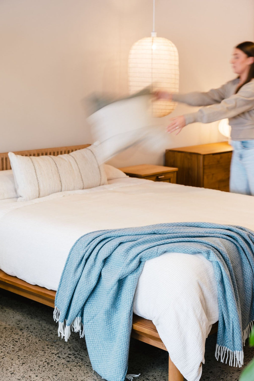 Feel free to get in touch with us– we have samples of most of our throws available in our Auckland-based studio. Once we confirm if we have the throw in stock you can book an appointment or if you're out of town, we're happy to send photos or videos so you can get a better idea of what you're looking at.