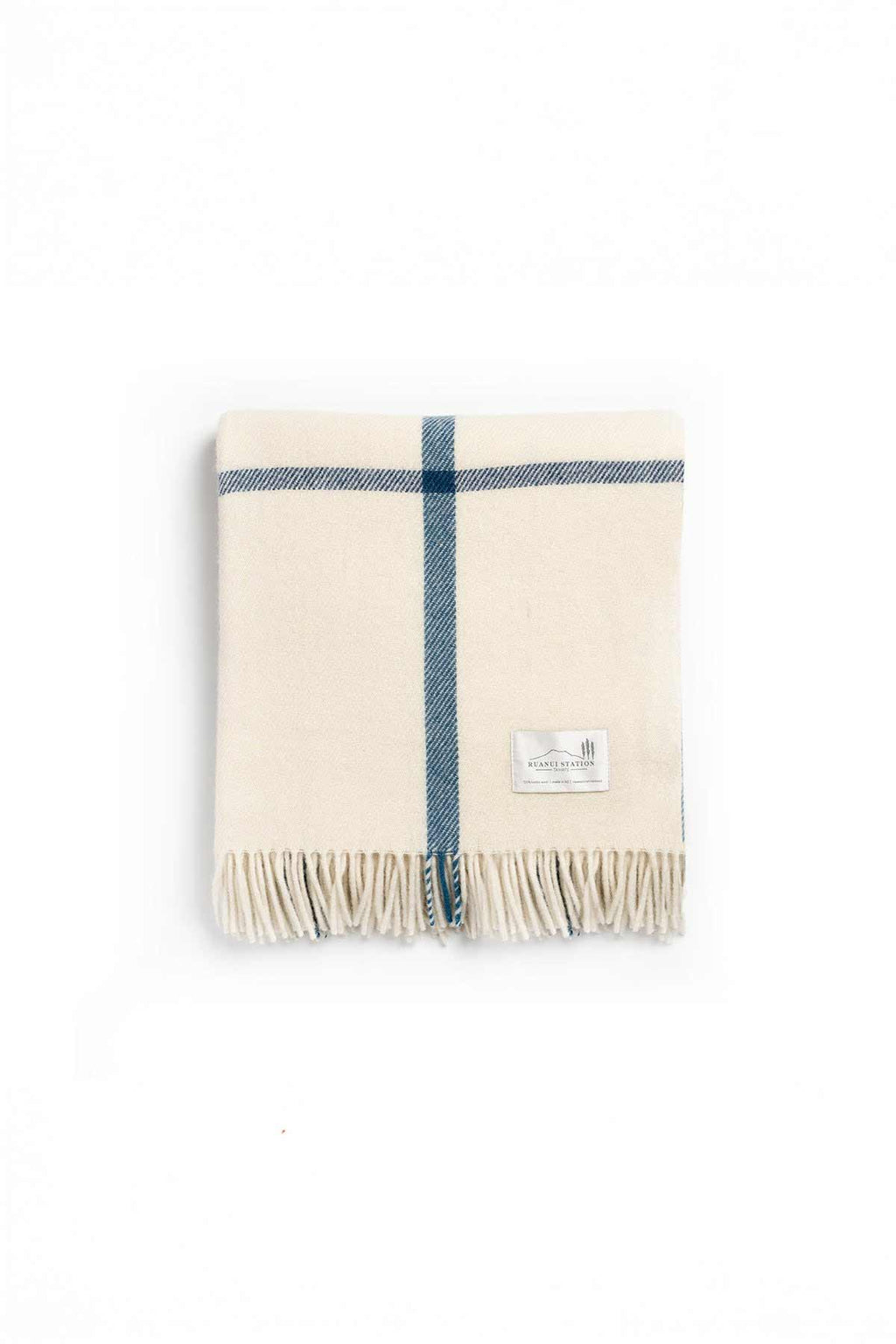 Ruanui Station Lambswool Throw - Wakarua White & Blue