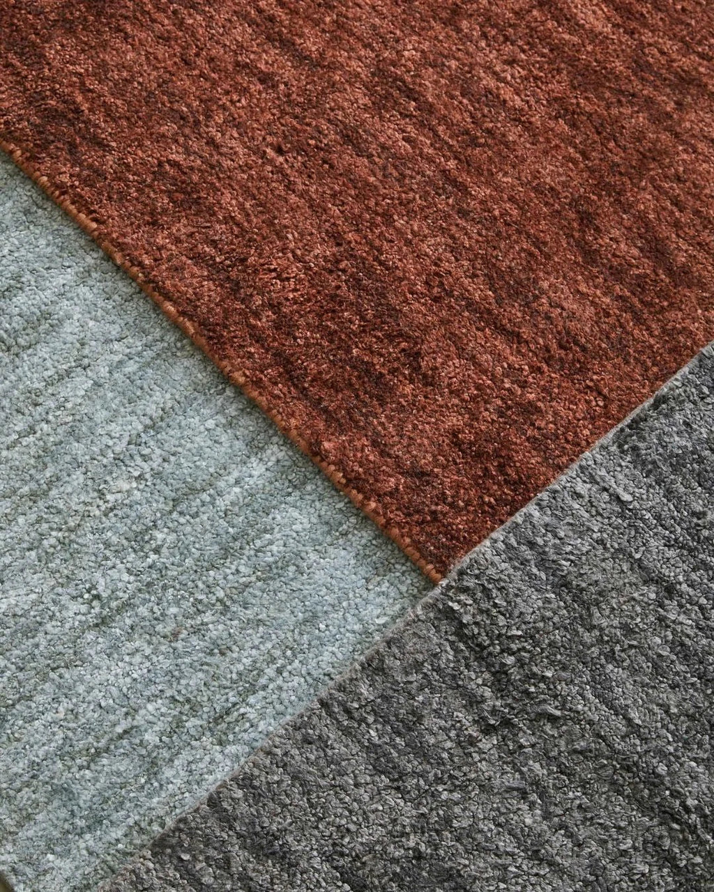 We have samples of most of our rug collection available to view in person — including a selection of smaller samples that can be loaned short-term to try in your space. Visiting the studio by appointment is a great way to explore what's available, as we often have more on-site than we offer online.