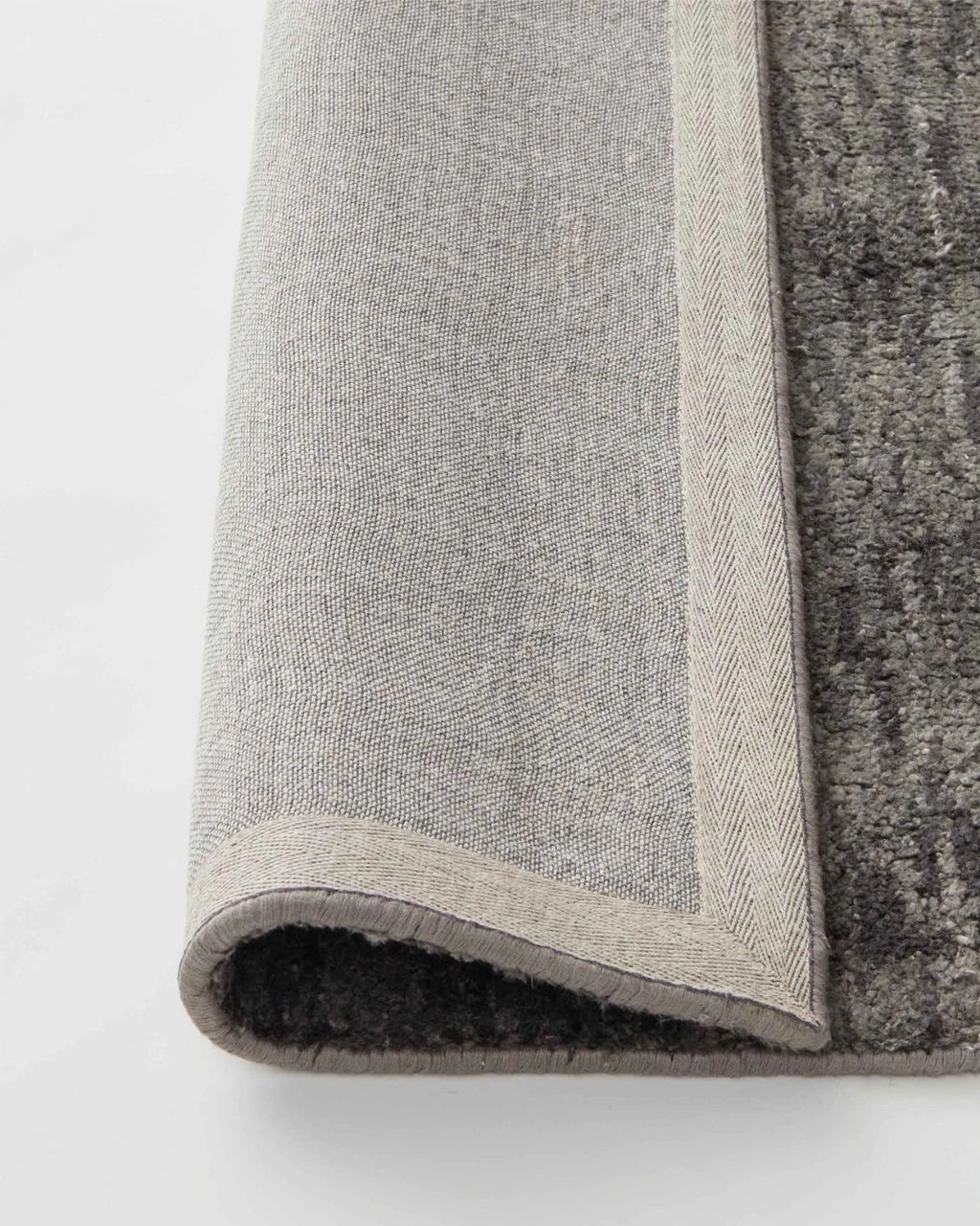 This is a beautiful rug to add texture and interest, as well as warmth and comfort, to a room. It consists of 70% bamboo silk and 30% wool and features a full woven cotton backing and braided cotton edging for improved longevity and wear. The shade Coal is ideal for neutral, modern interiors. Please note our rugs are individually handmade and woven, as such size can alter by 5% from the dimensions ordered.