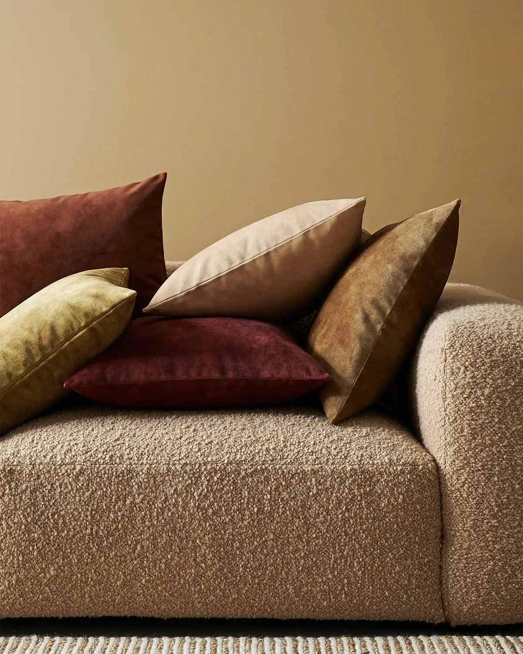 We recommend starting with 50x50cm (20"x20") or 55x55cm cushions—they're generously sized and create a plush, inviting look. Add a lumbar cushion (like 40x60cm or 30x50cm) in front for extra comfort and a layered effect. If your sofa is compact, consider using just smaller square or lumbar cushions to avoid crowding the space.