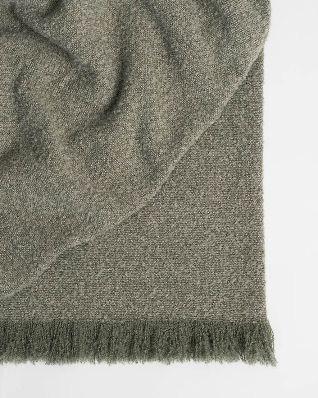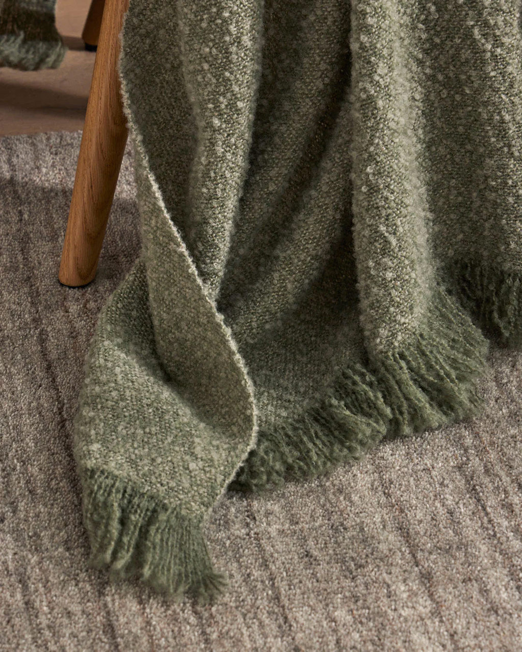 Designed in the Weave Home Auckland studio and woven locally at one of New Zealand's finest weavers, Clive is a supremely soft and lightweight boucle throw blanket. The Spruce colourway is a soft two-toned green, with green fringe.
