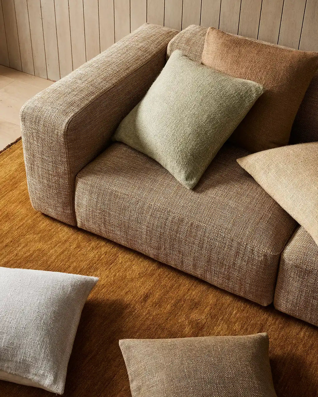 We recommend starting with 50x50cm (20"x20") or 55x55cm cushions—they're generously sized and create a plush, inviting look. Add a lumbar cushion (like 40x60cm or 30x50cm) in front for extra comfort and a layered effect. If your sofa is compact, consider using just smaller square or lumbar cushions to avoid crowding the space.