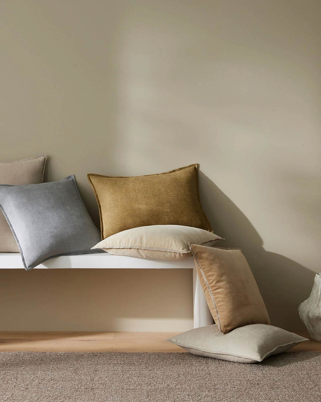 With a complementary linen micro-flange for added sophistication, Francesca’s velvet texture and neutral colourways make this cushion a lovely, versatile addition to any collection. Choose from cover only, a vegan-friendly micro-blend inner, or a duck feather inner.