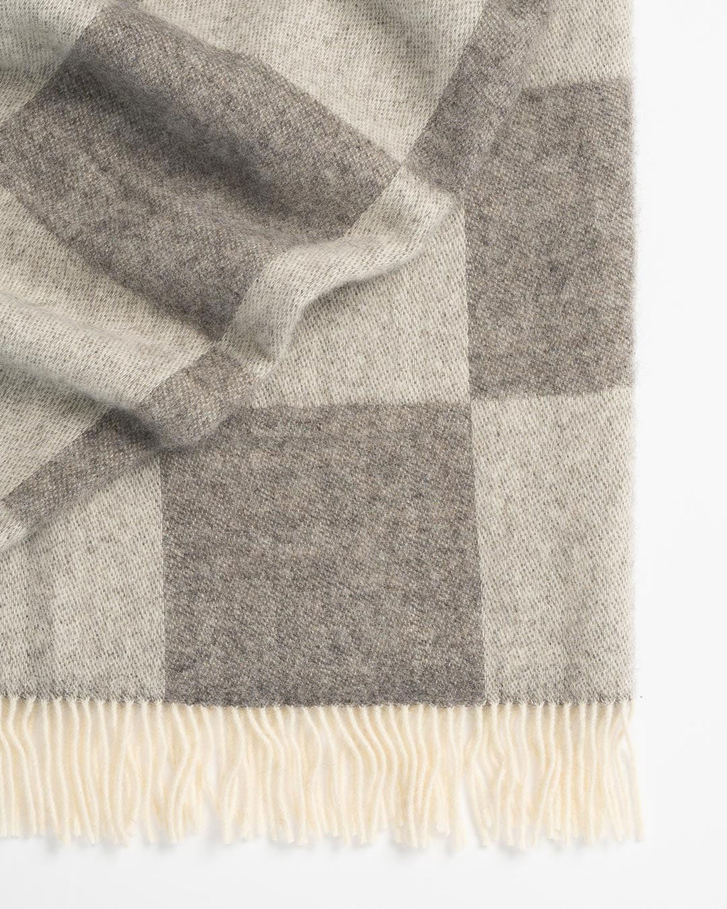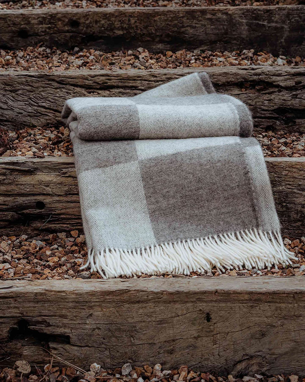 Lake Hayes by Weave Home is a classic design, and the Ash colourway offers a soft brown and grey check with an off-white fringe. A versatile design, made from warm New Zealand wool.