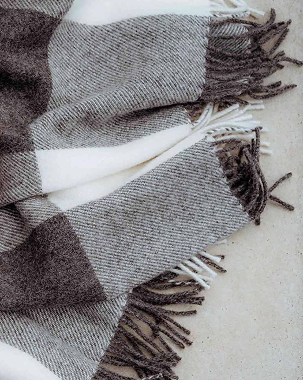 The large Lake Hayes throw blanket by Weave Home is a classic design, and the Peat colour-way offers a deep, rich brown and cream check with a detailed fringe. A versatile design, made from warm New Zealand wool.