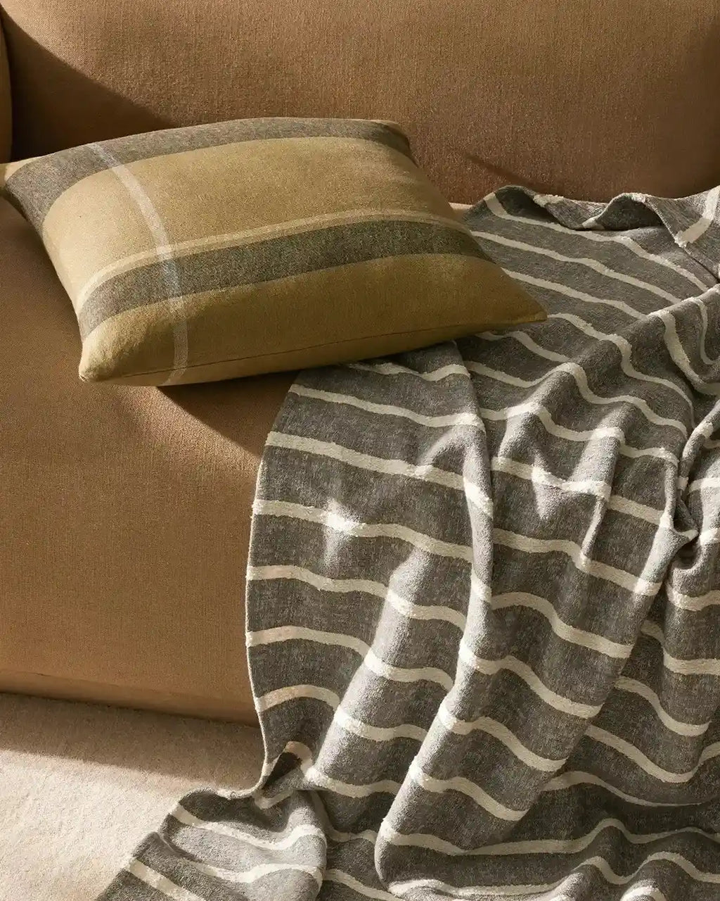 Textural with a woven, bouclé stripe and soft hand feel, Piazza is a light, yet snuggly throw that is perfect for adding pattern to your living space or bedroom. Its Mineral colourway is a neutral grey that adds a sense of ease and sophistication.