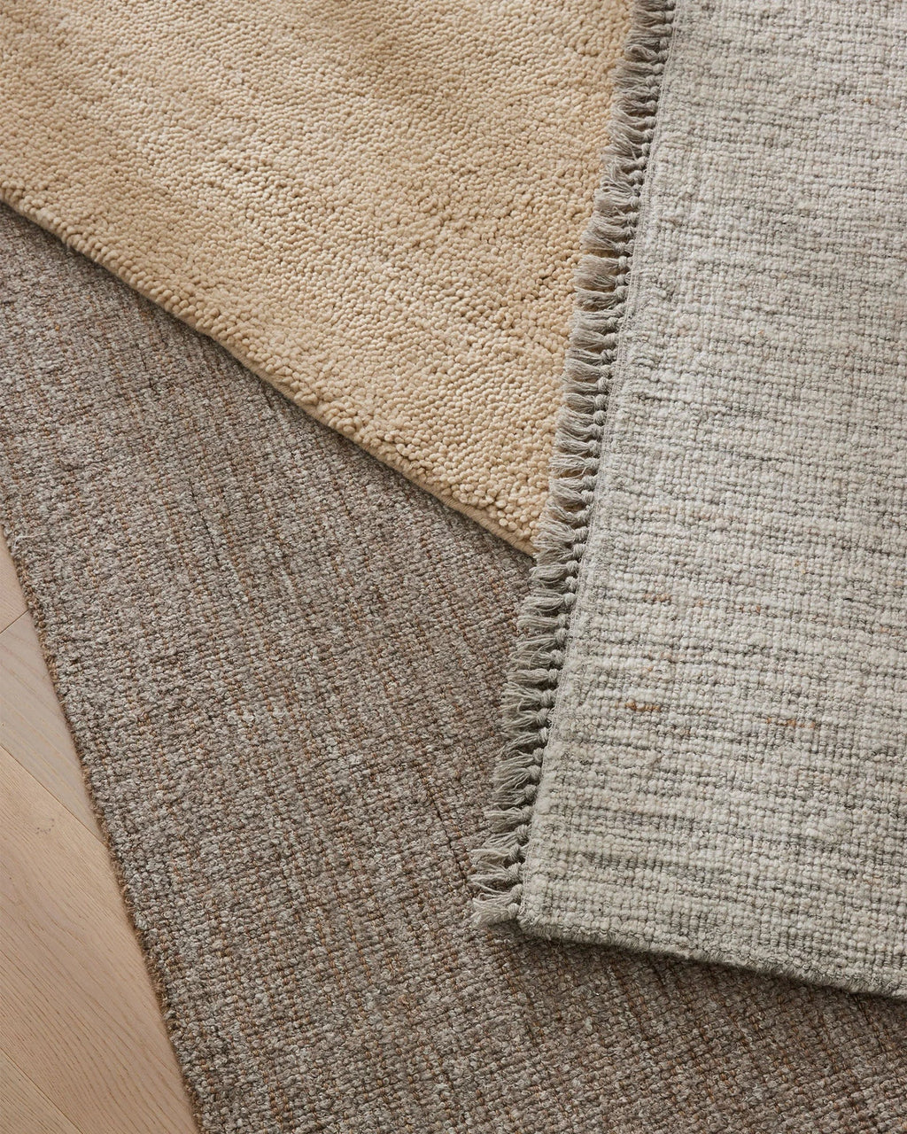 We have samples of most of our rug collection available to view in person — including a selection of smaller samples that can be loaned short-term to try in your space. Visiting the studio by appointment is a great way to explore what's available, as we often have more on-site than we offer online.