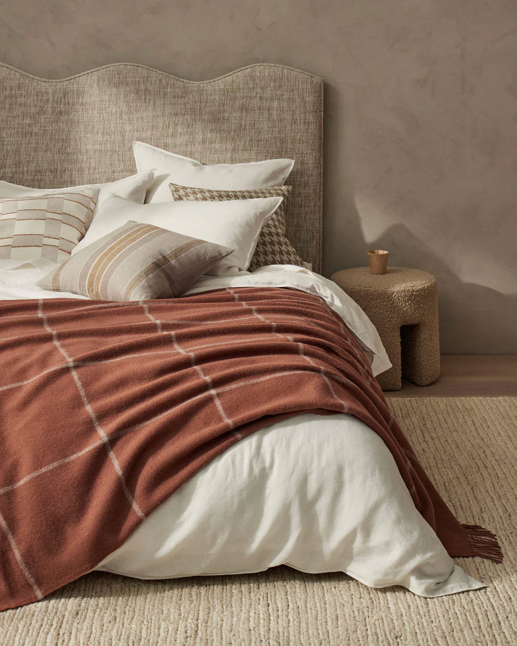 At 140cm x 240cm, this throw blanket is sizeable and perfect for almost any living space. We recommend dry cleaning for care. All of our throws make the perfect companion over cooler days and nights, and can also be enjoyed outdoors — whether over your knees when dining alfresco, or even as a picnic blanket. It is recommended that all throws must be stored indoors for longevity and enduring comfort.
